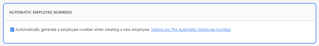 - Check the automatic employee numbers checkbox to enable automatic numbering.