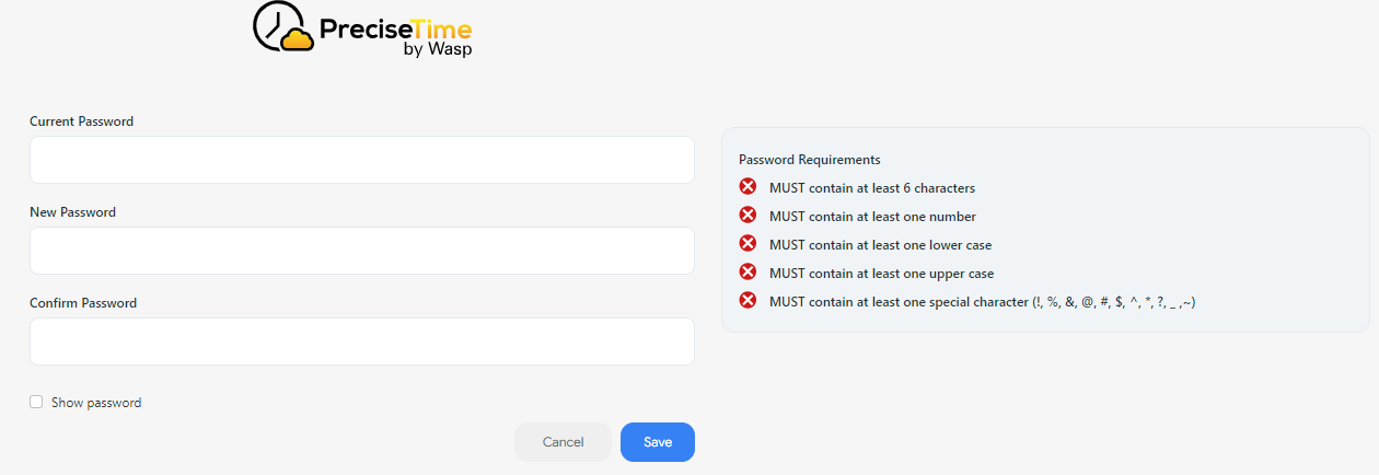 👉 Refer to Settings > Password Configuration to configure password requirements.