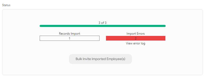 - You will see the Bulk Invite Imported Employee(s) button if a minimum of one employee is imported successfully.