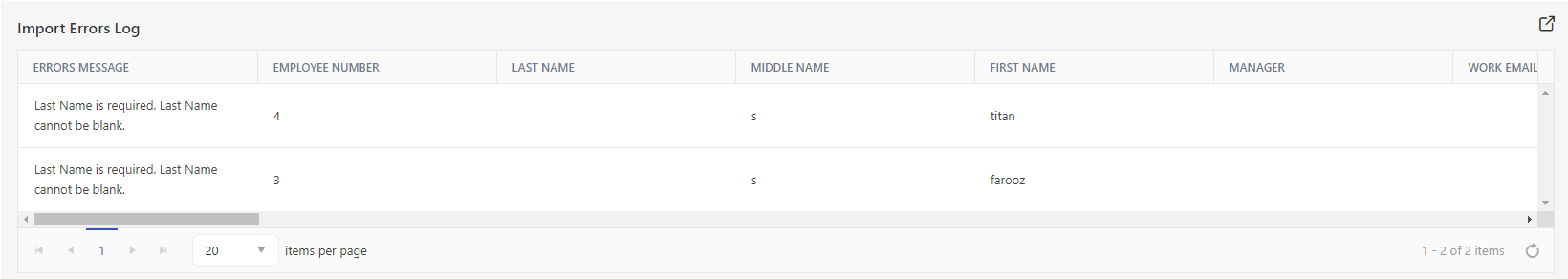 Note: Records shown on the Employee grid are subject to strict permissions and it is entirely possible to import records and not see them - without modifying the permissions or filters on the employee list. This scenario also applies if a manager is assigned to an employee and he/she is logged in. Note that usually employees can only be seen by their own management chain, subject to permissions and filters.