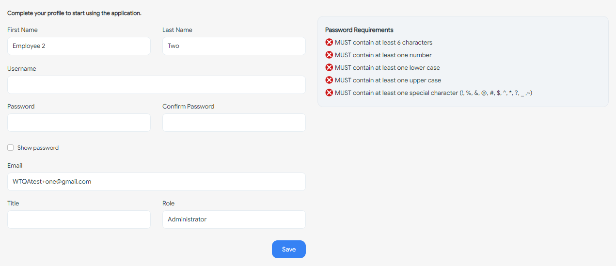 The Employee receives a registration link to their work email address once the administrator adds their details and sends them an invitation to access the application.