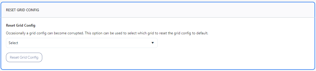 The screen provides you with an option to reset custom fields, field names, and grid configuration.