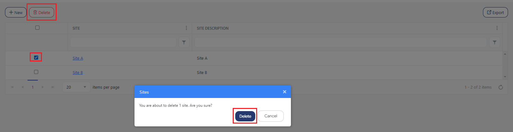 Note: You cannot delete a site if it is associated with an employee or a clock.