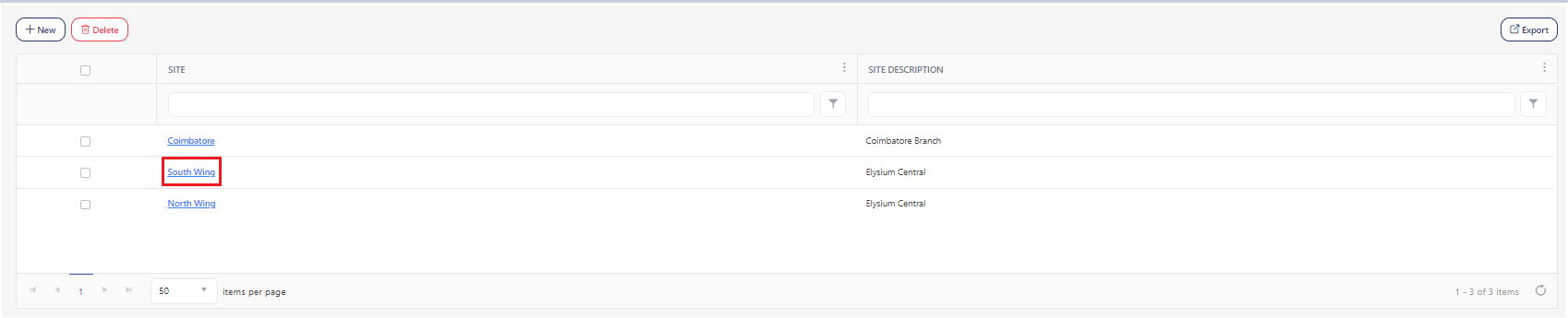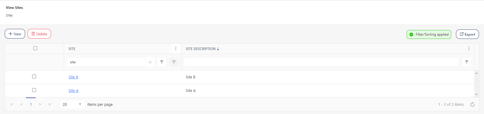 - Edit - The site name is a hyperlink that will navigate to the View/Edit Site screen.