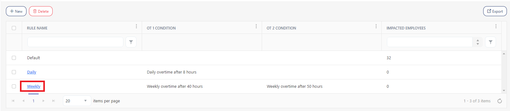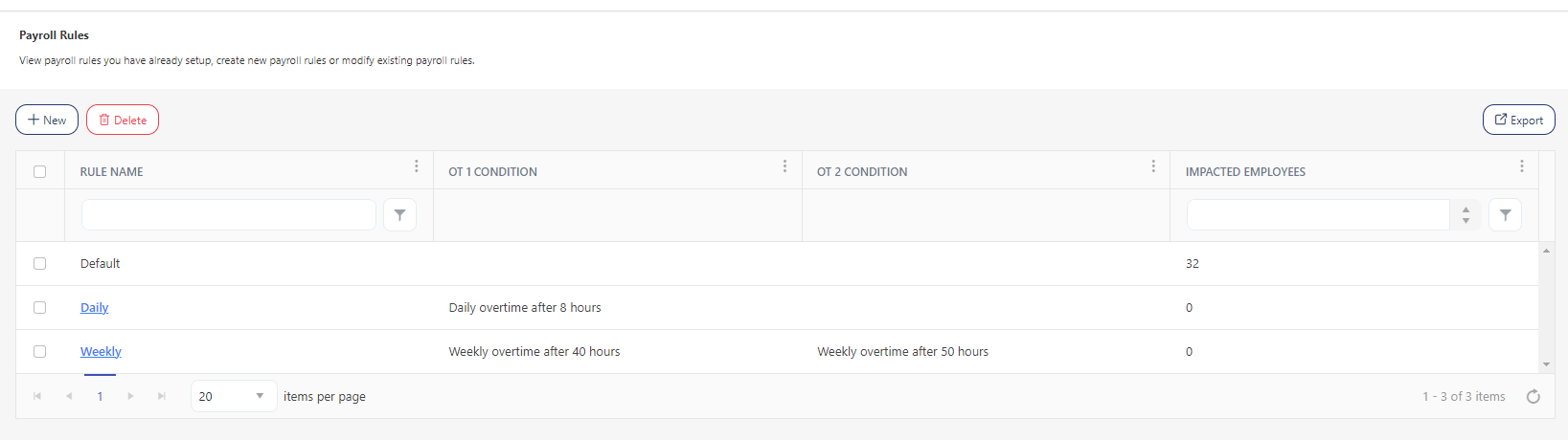 Click on the Export button to download the list of payroll rules.