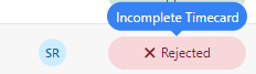 - Rejected - This status appears when a manager rejects a timecard. On hover, it will display the notes added by the manager.